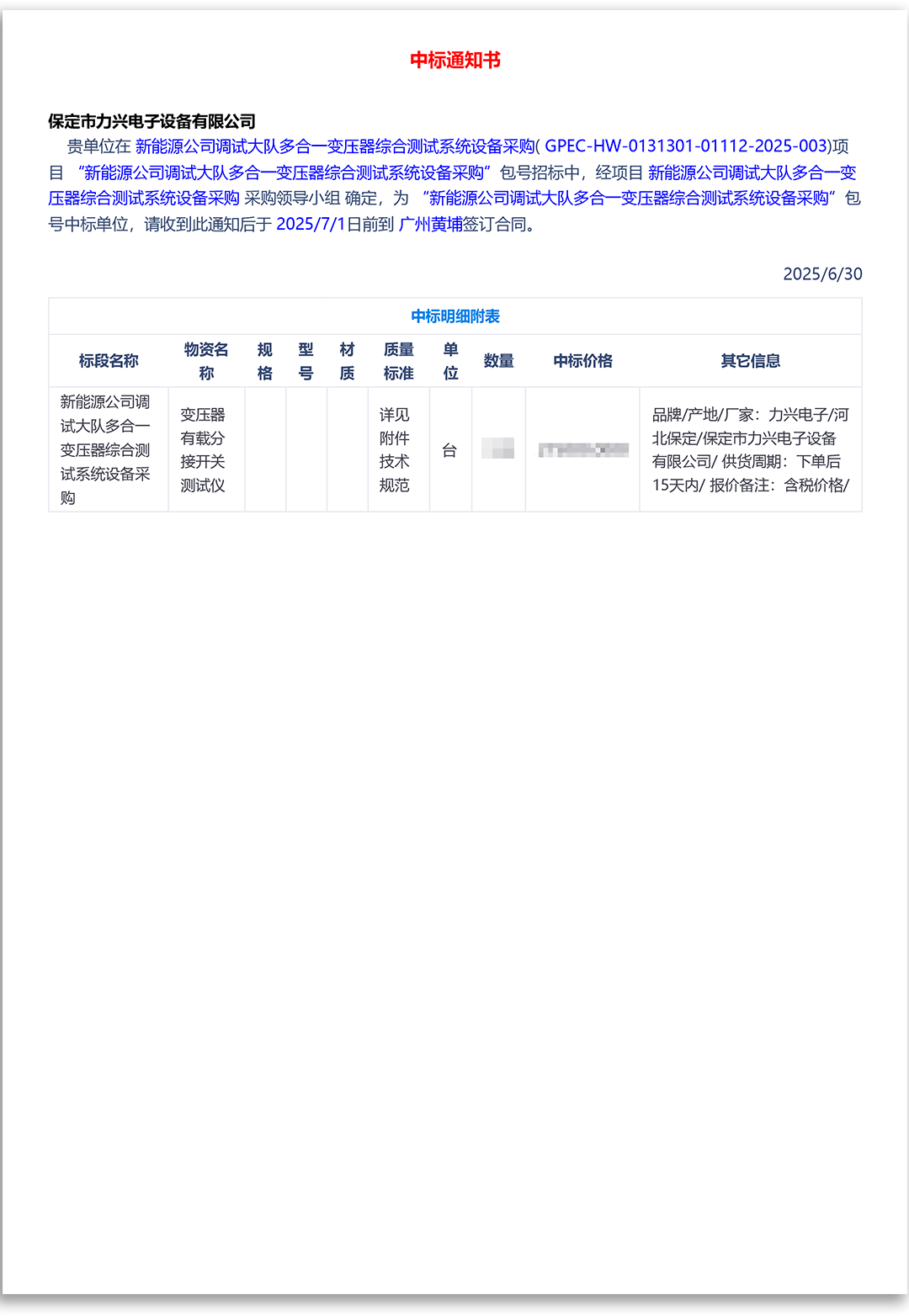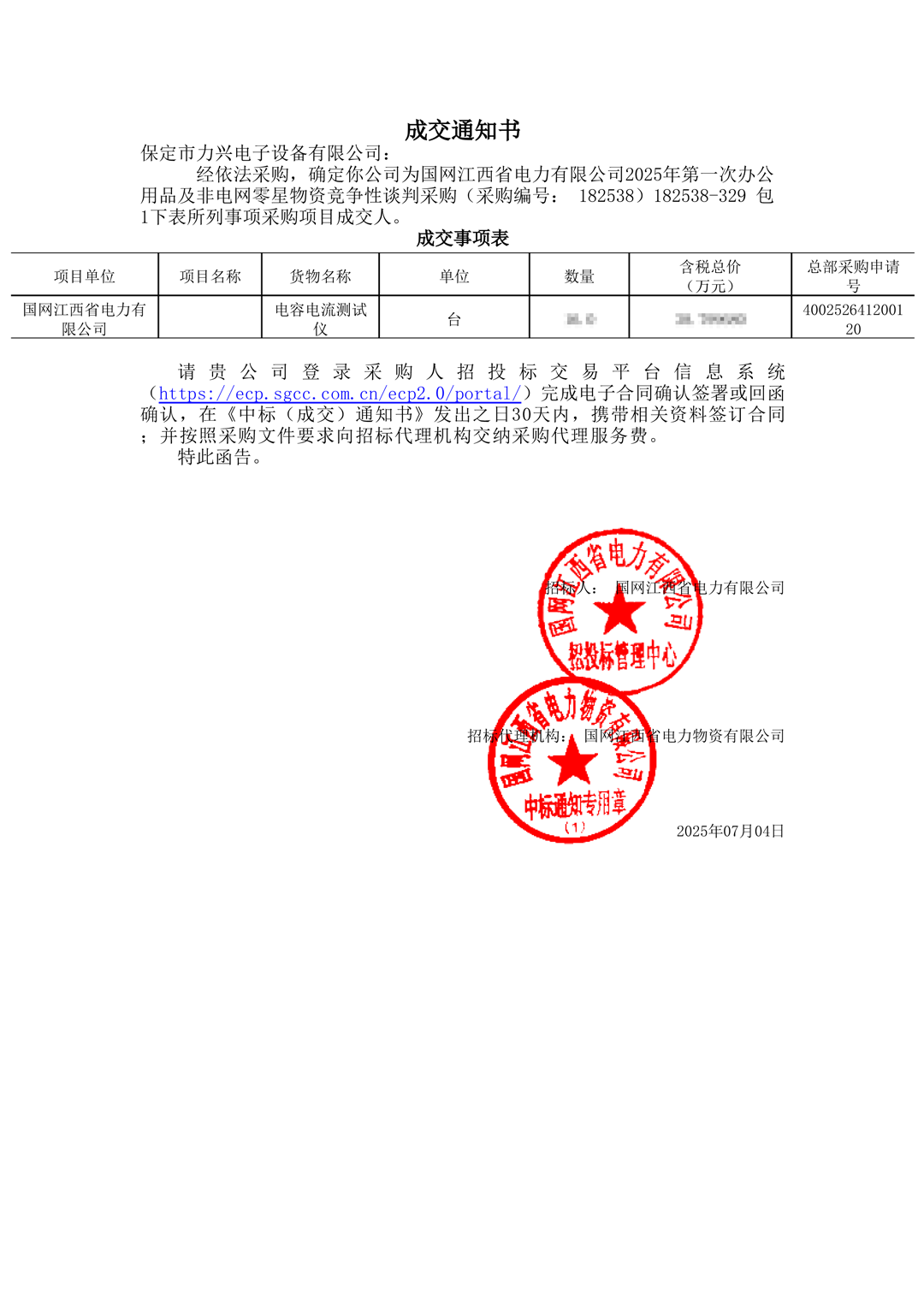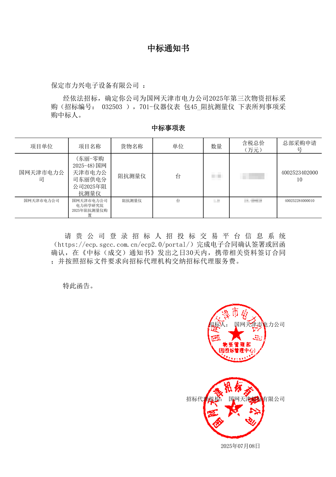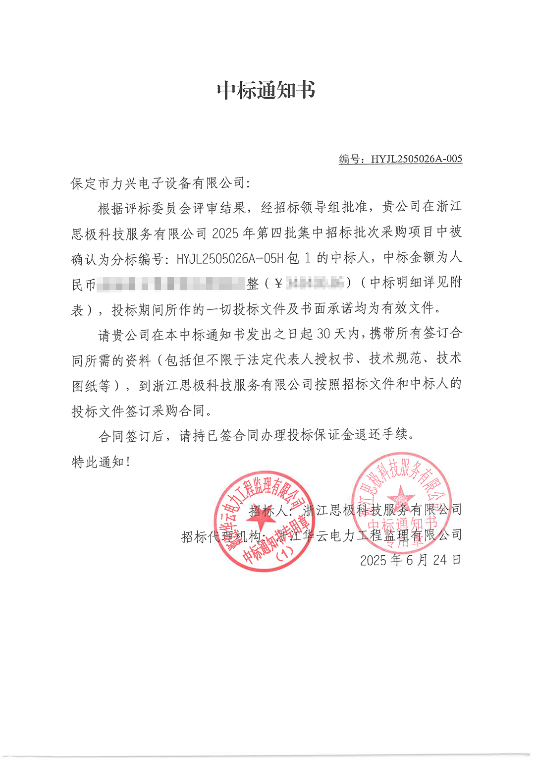 保定市力興電子設(shè)備有限公司第二季度中標(biāo)通知如下展示,我們將團(tuán)結(jié)一致,再接再厲,迎接已經(jīng)到來的第三季度。