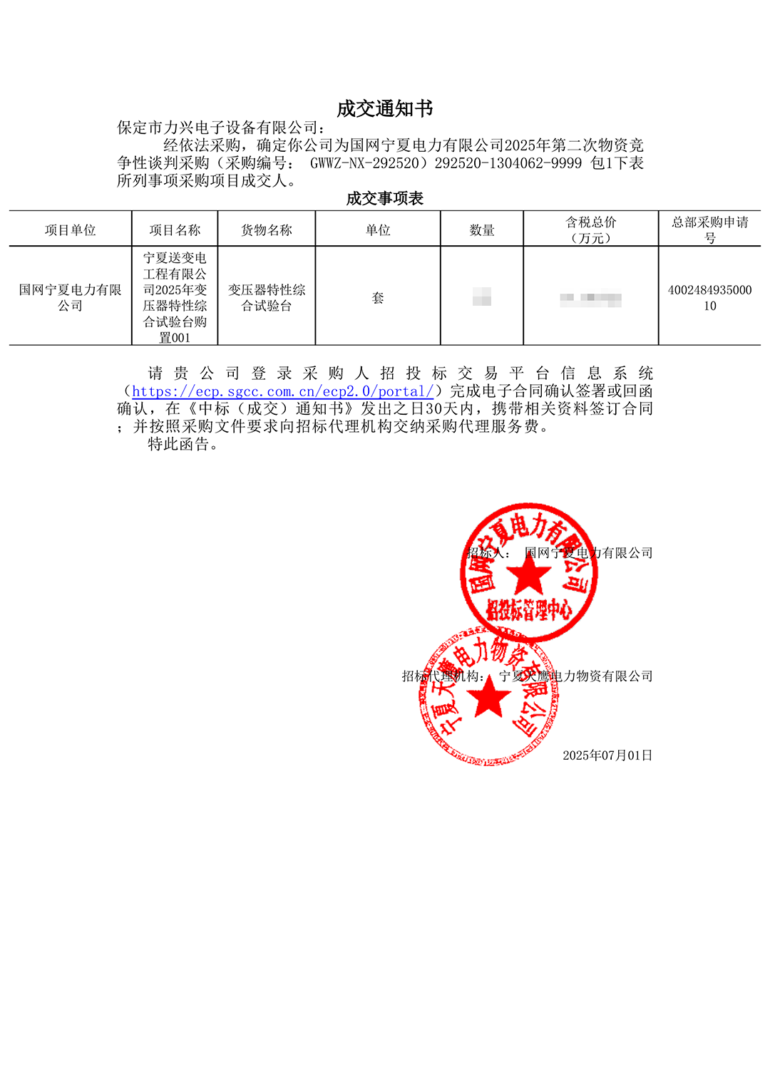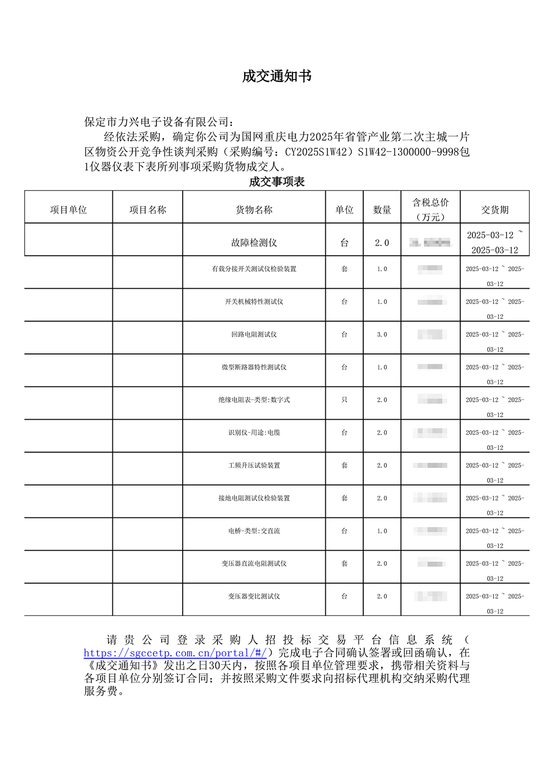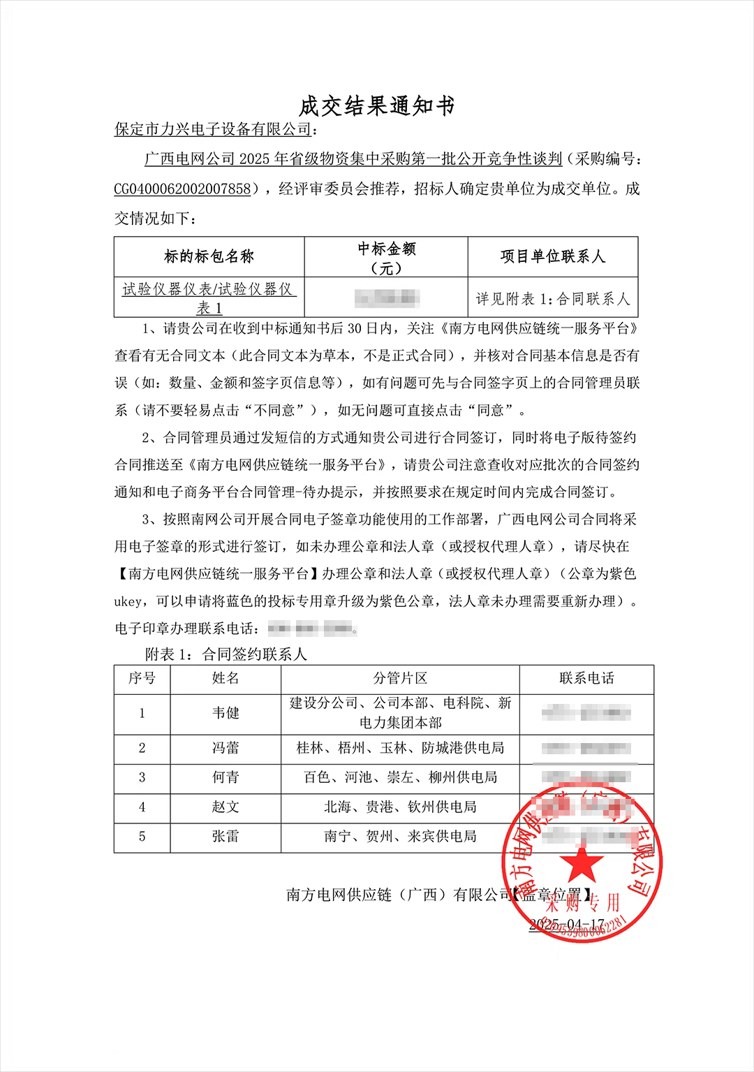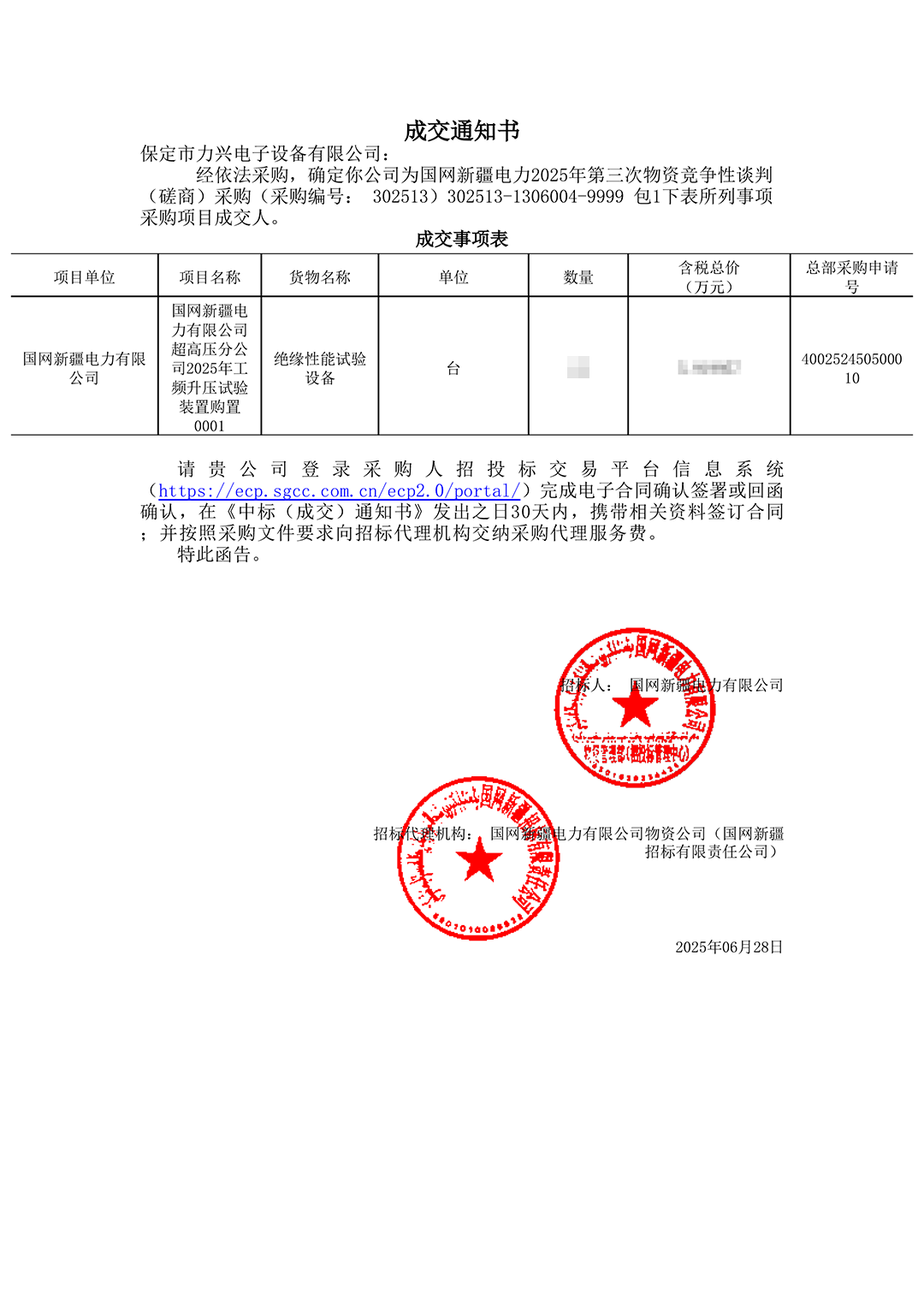 保定市力興電子設(shè)備有限公司第二季度中標(biāo)通知如下展示,我們將團(tuán)結(jié)一致,再接再厲,迎接已經(jīng)到來的第三季度。